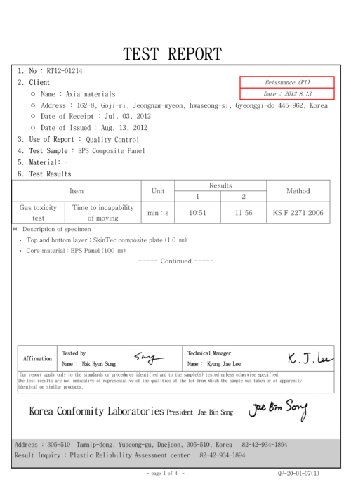 실대형 화재시험 (컬러강판 I)