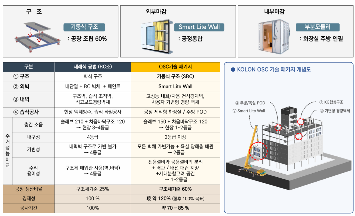 설계(Kolon Global 및 협력사) + 구조 (Kolon KG Structure) + 외장벽체 (LitePan) + 시공 (Kolon E&C 등)