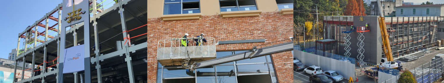 - 외벽 Lite Pan 준불연 복합패널 총 작업일 2일 (시공량 370㎡/day)